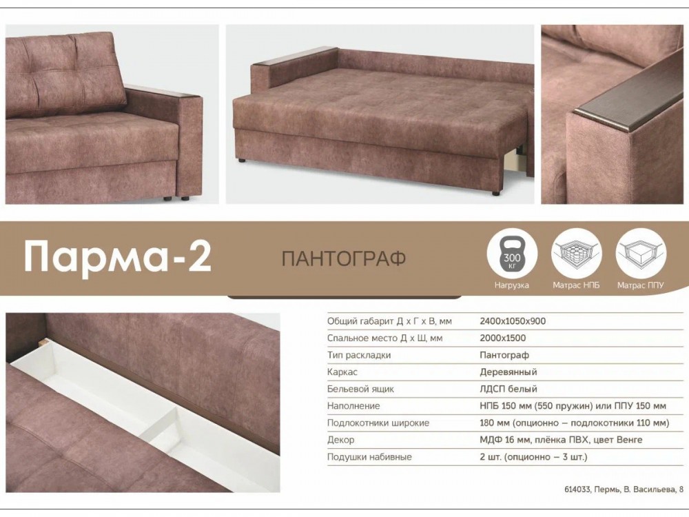 Диван Парма-2 в Нязепетровске - nyazepetrovsk.mebel74.com | фото 2